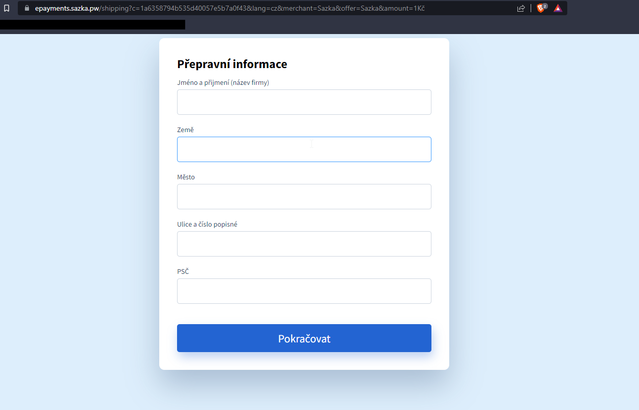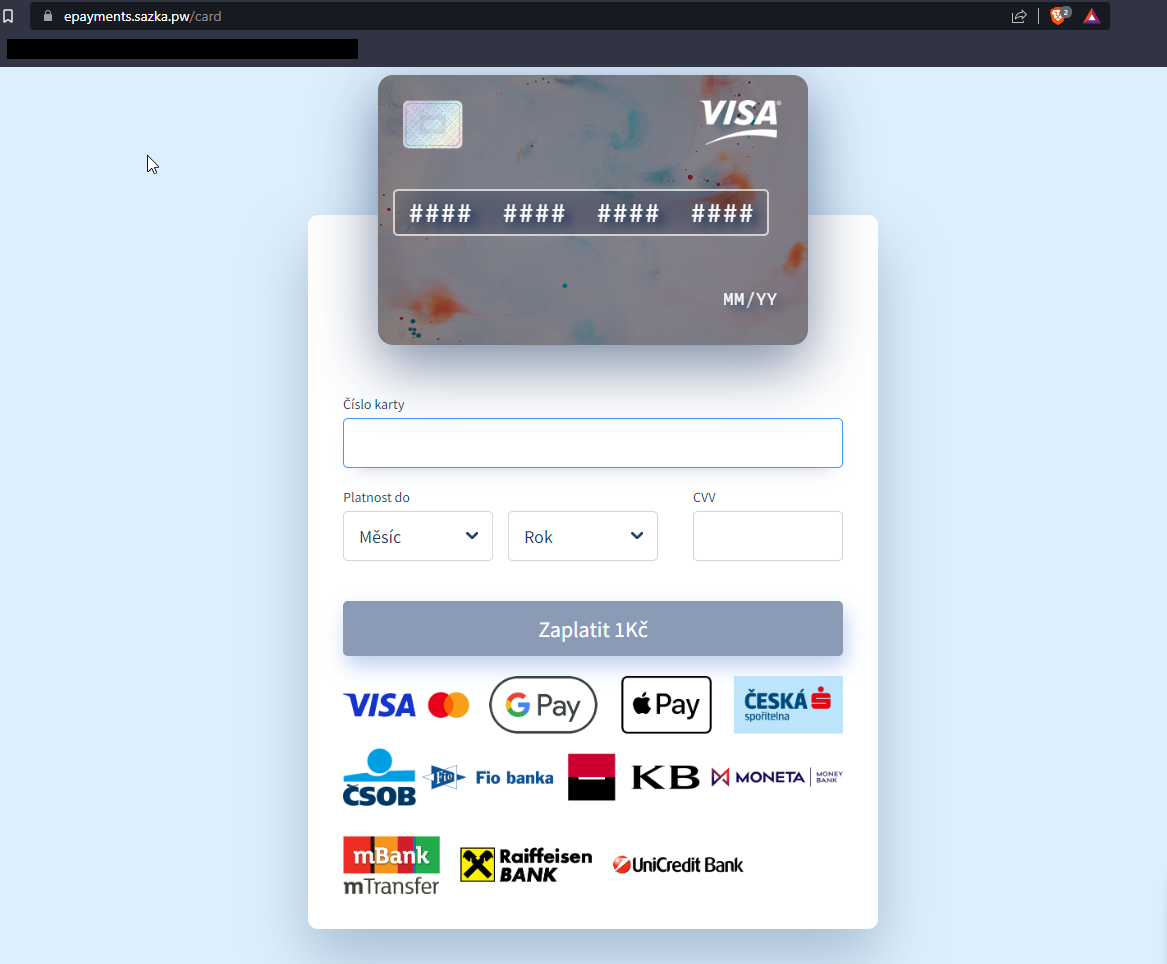 However, most of the links on the site led either to a fake payment gateway or a form requesting sensitive data such as an address. The fake payment gateway demanded payment of 1 CZK.